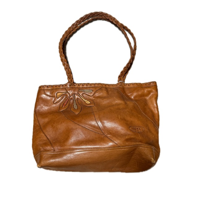 IBIZA Japan Leather Patchwork Tote with Braided Handles イビサ 本革パッチワーク 編み込みハンドル トートバッグ