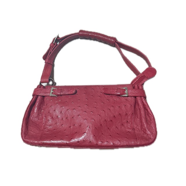 pink Ostrich Leather hand Bag with Buckle Detail y2k オーストリッチ本革 ハンドバッグ
