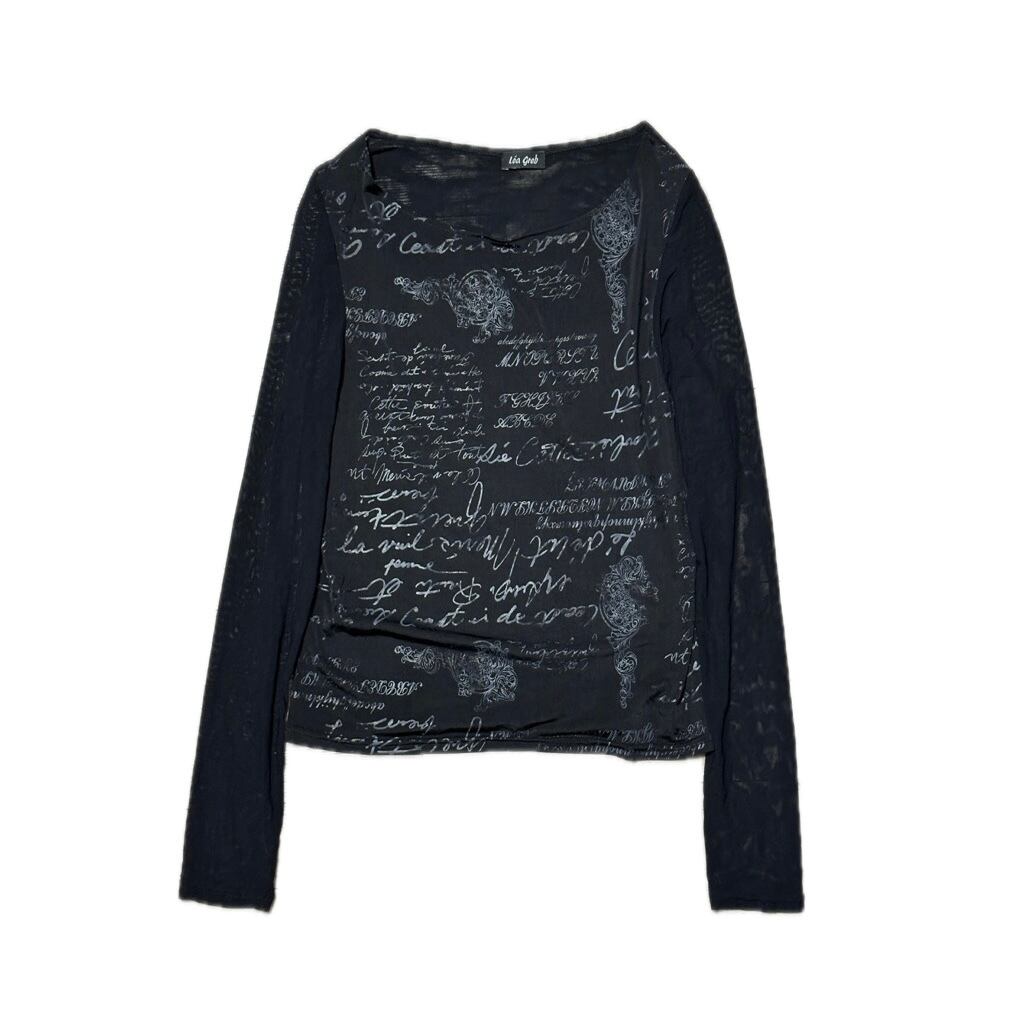 Long-Sleeved T-Shirt 黒地 ロングTシャツ ロゴ メッシュ y2k