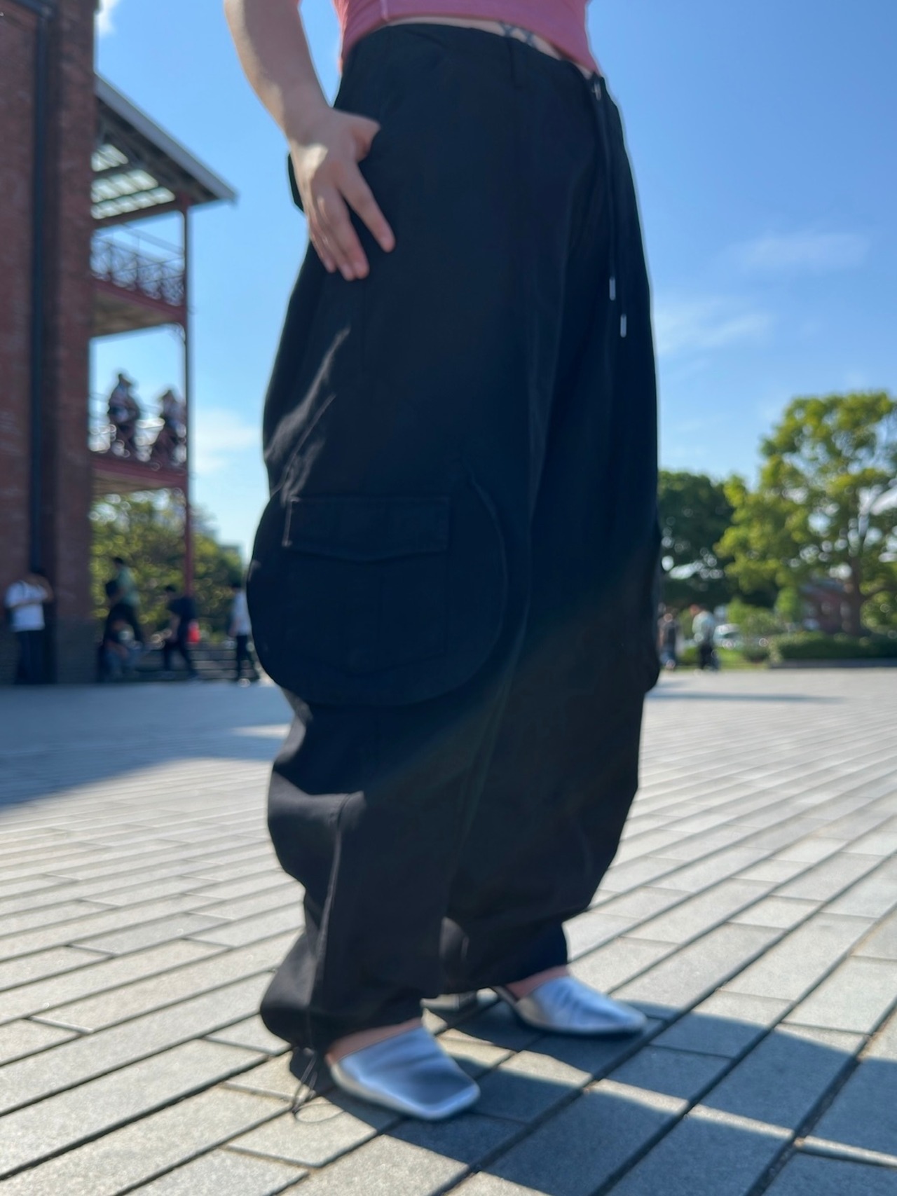 【新品セレクト品】 Drawstring cargo pants black ドローストリング カーゴパンツ