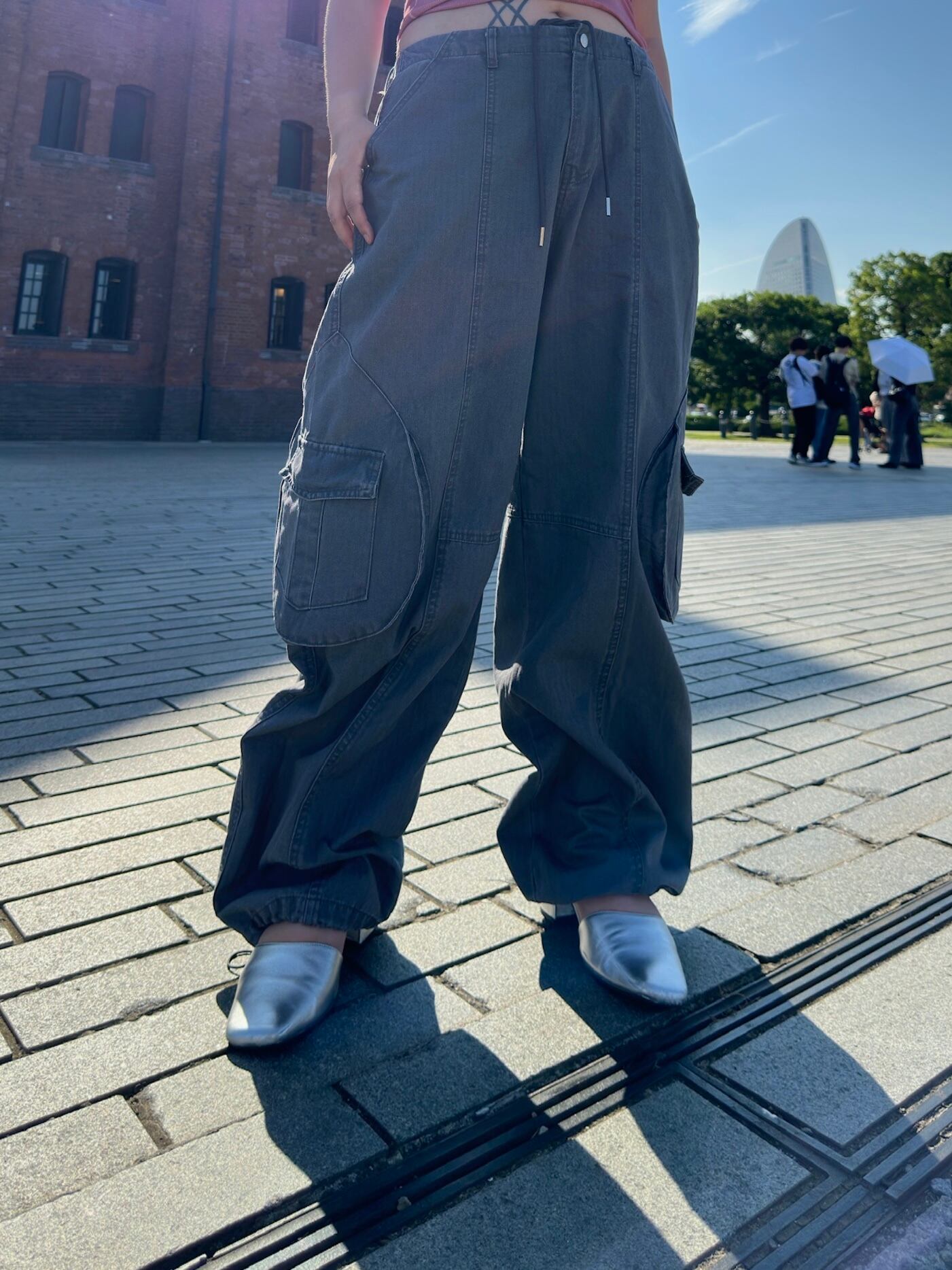 【新品セレクト品】Drawstring cargo pants gray ドローストリング カーゴパンツ