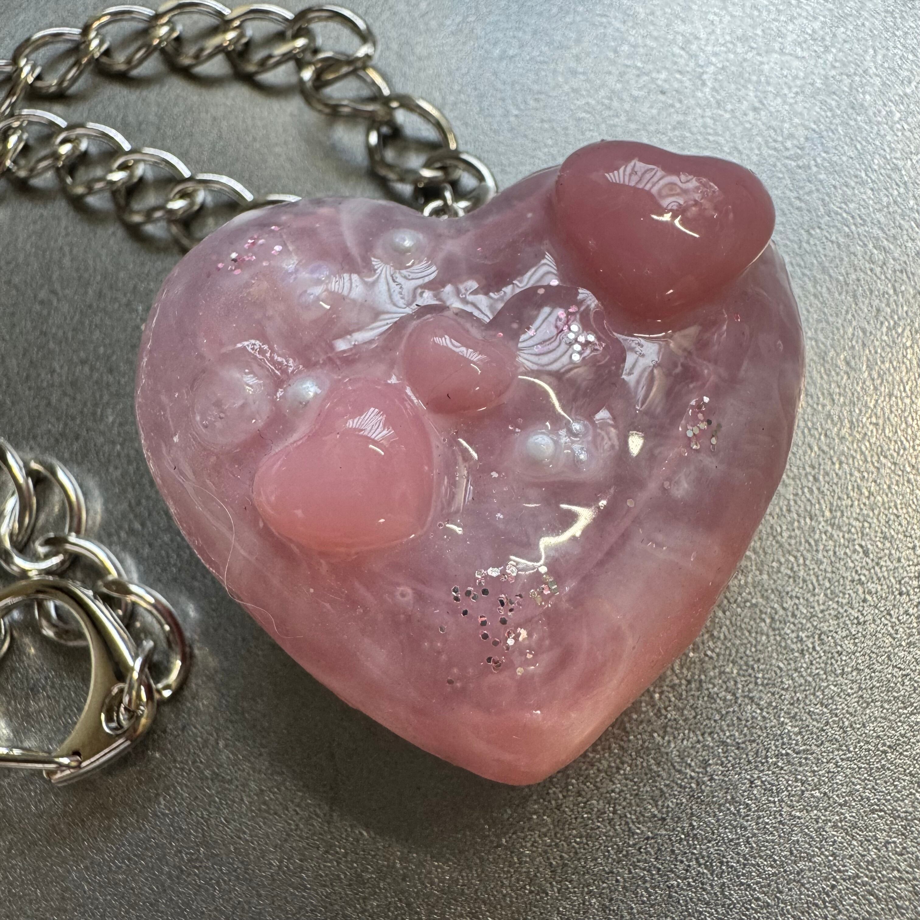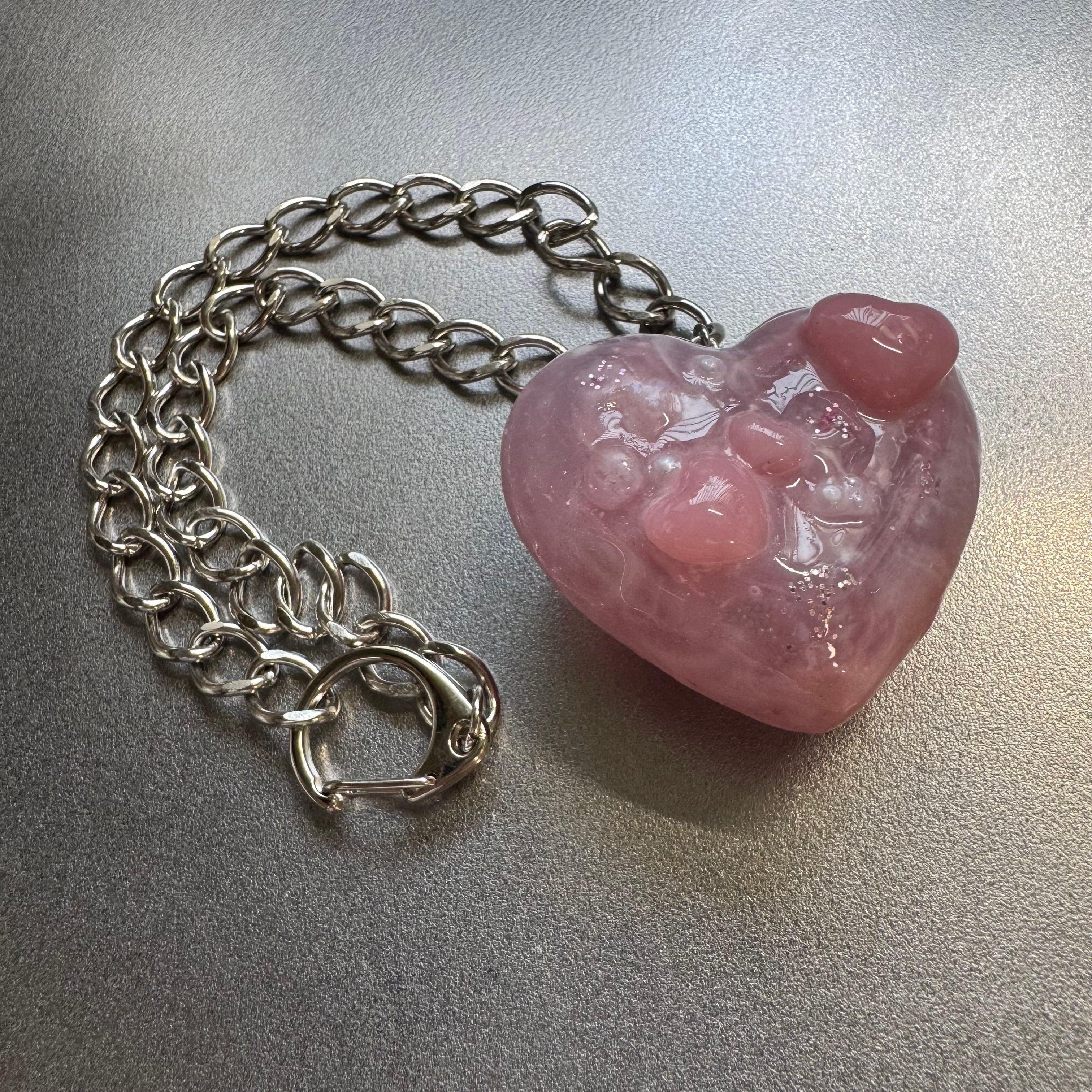 Big Heart Charm Necklace pink