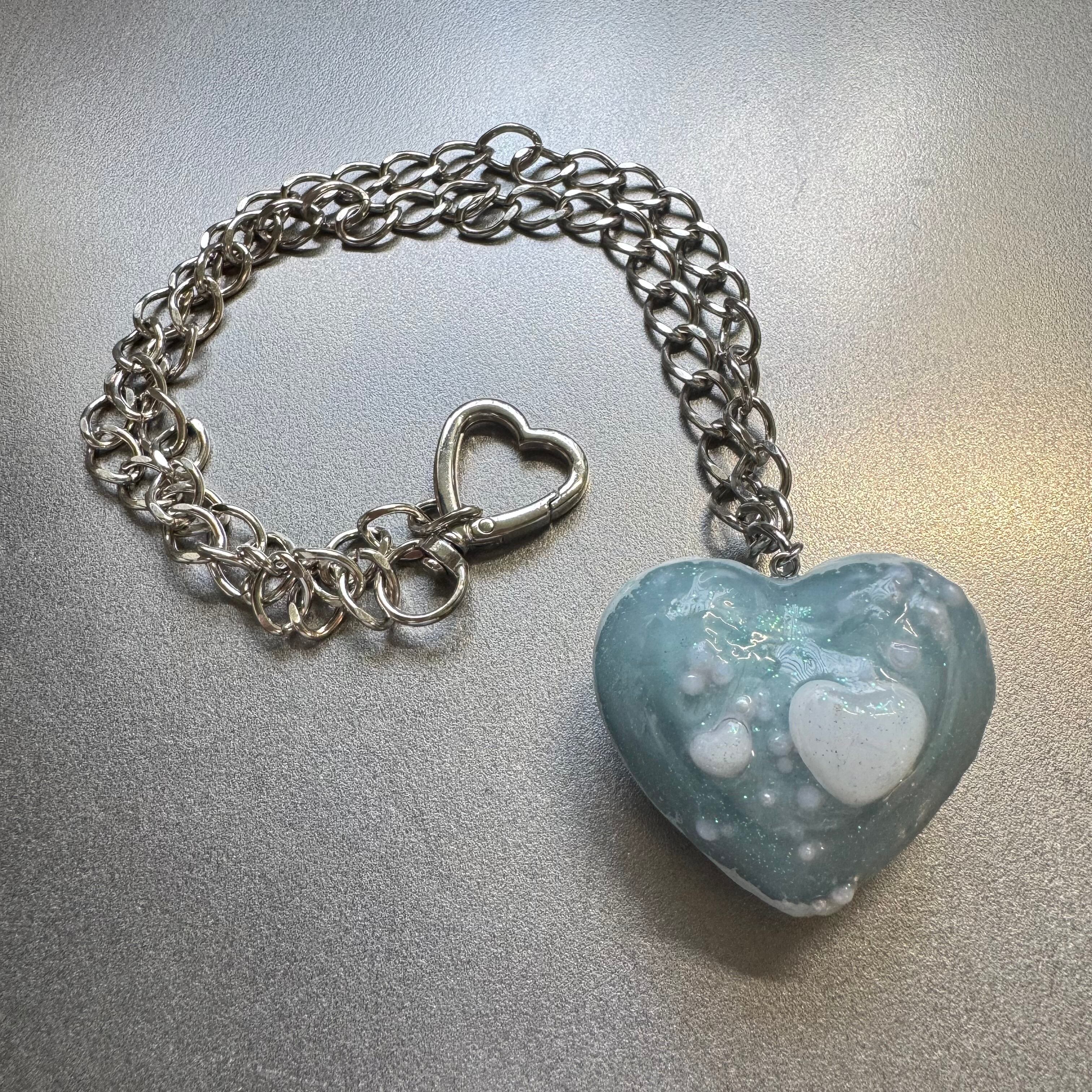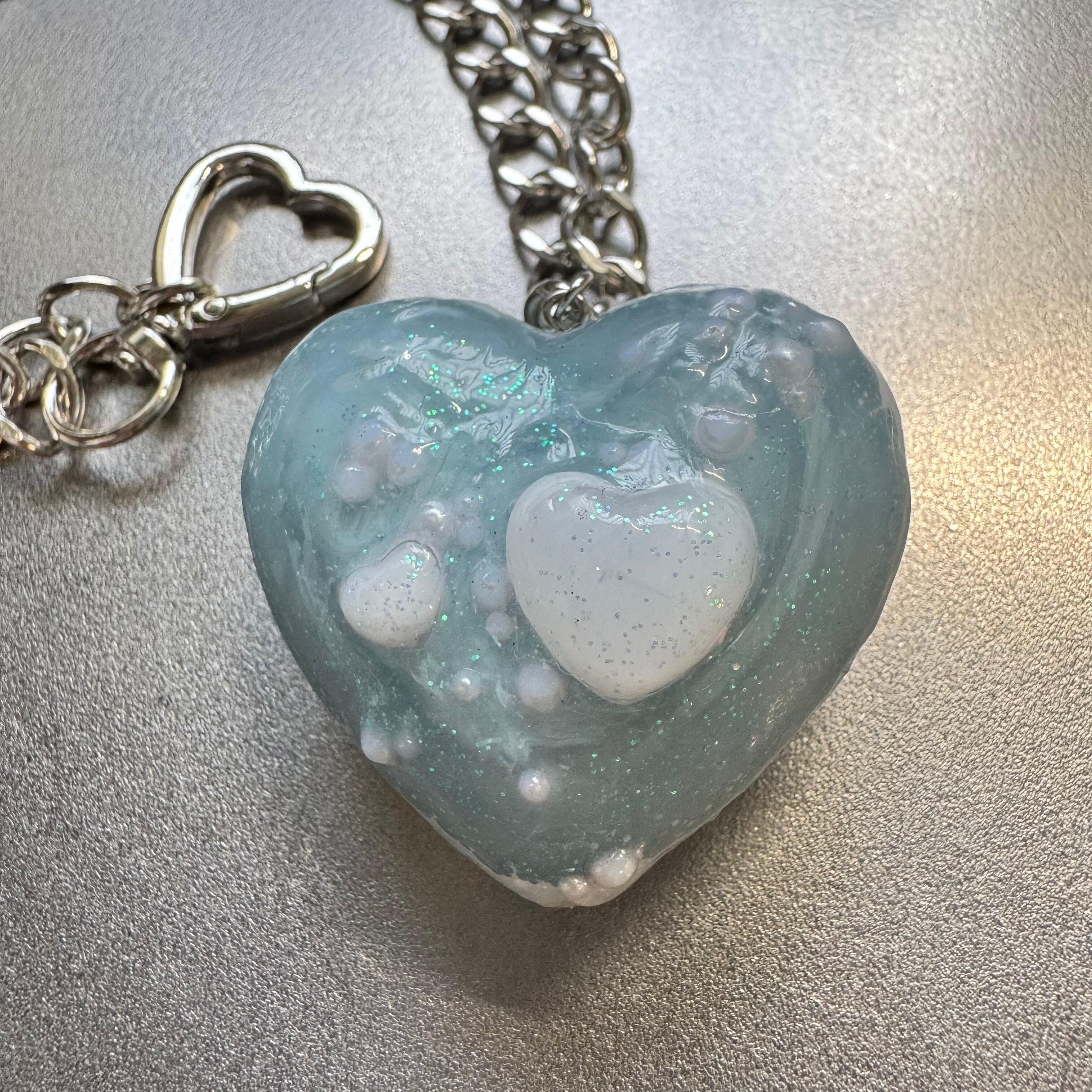 Big Heart Charm Necklace blue