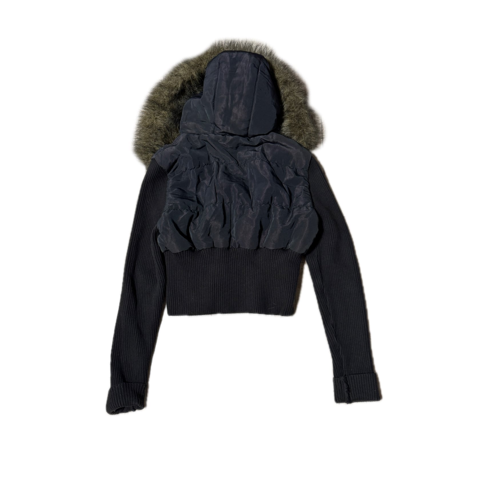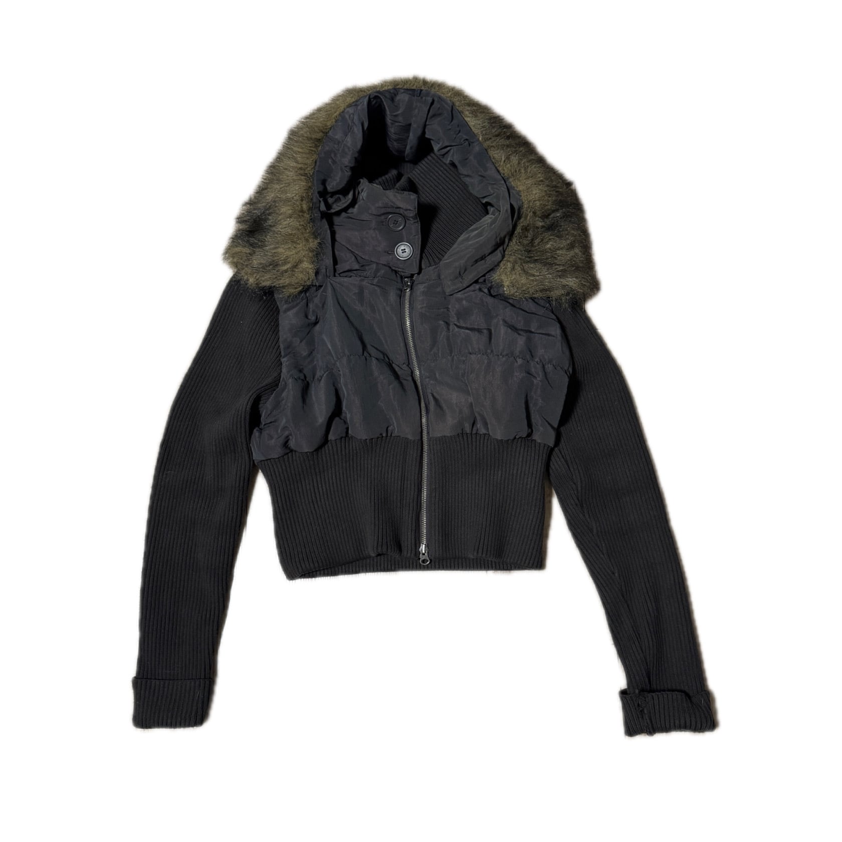 Faux Fur and Ribbed Knit Panel Jacket リブニット袖 フェイクファー切替ジャケット