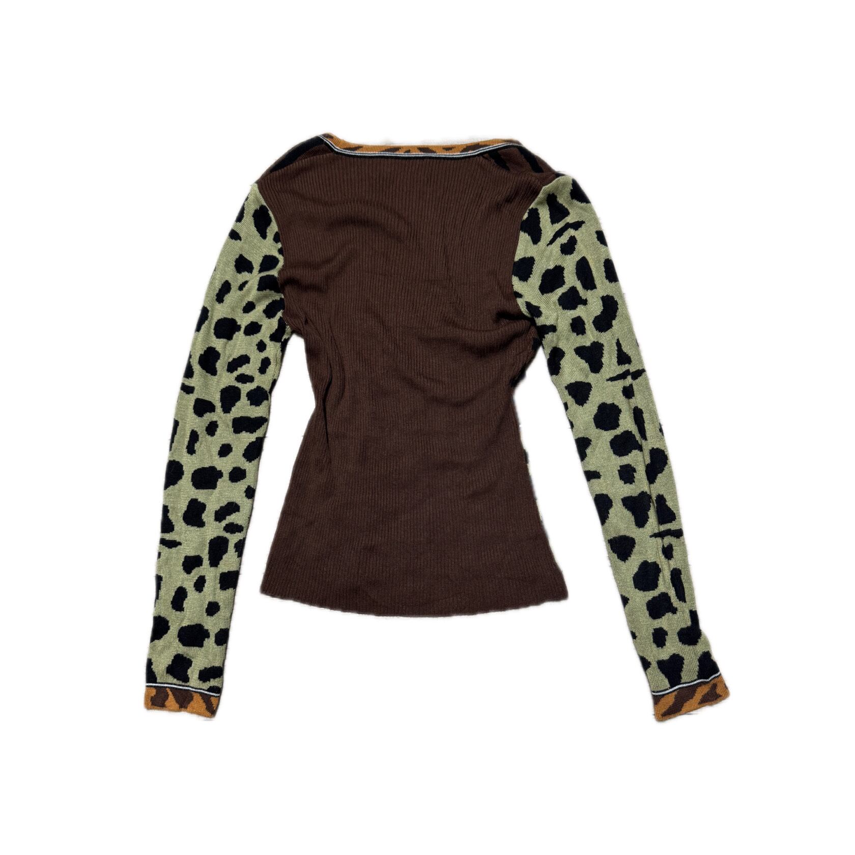 Leopard & Stripe Pattern Knit Top レオパード&ストライプパターン ニットトップ