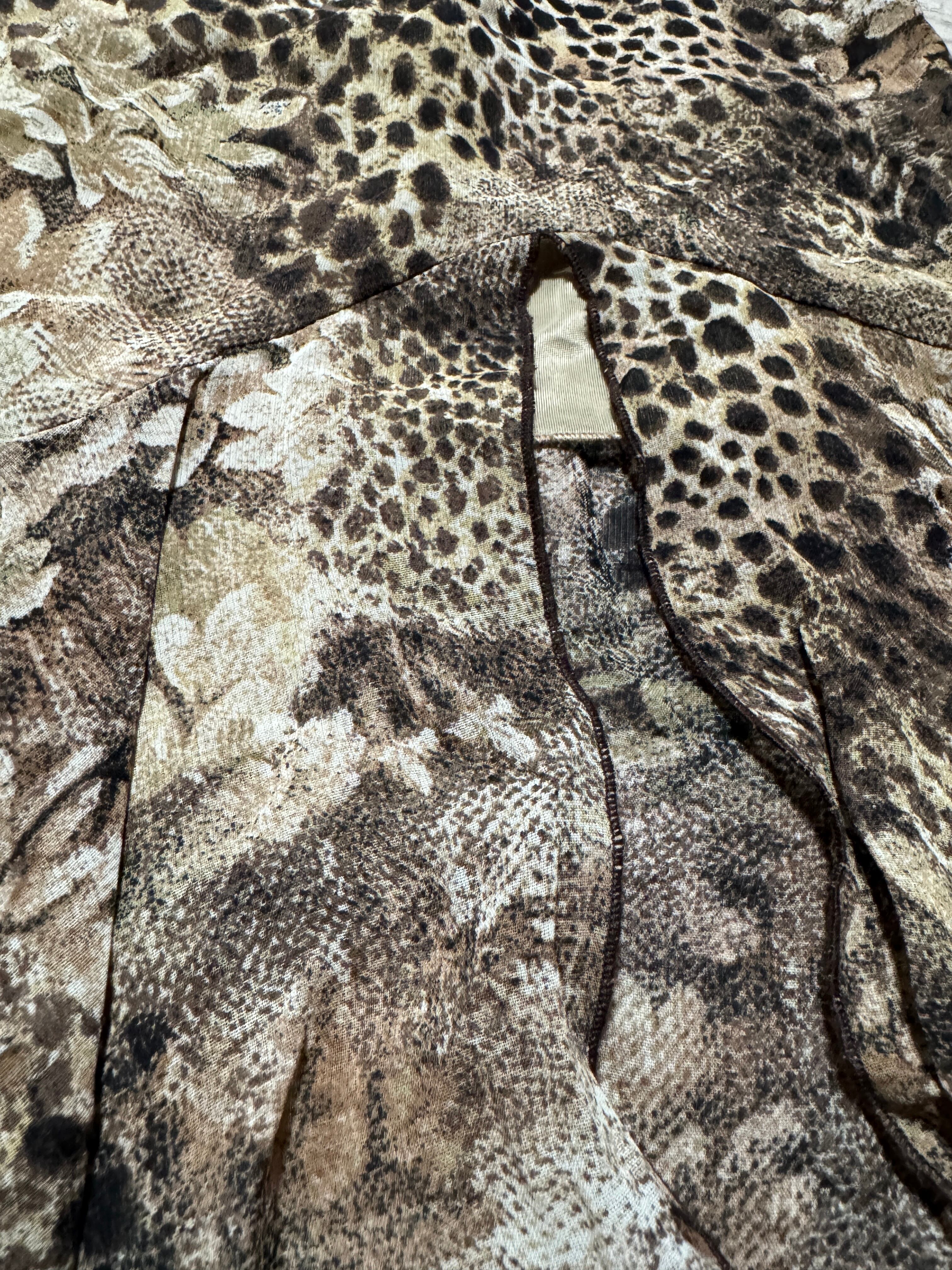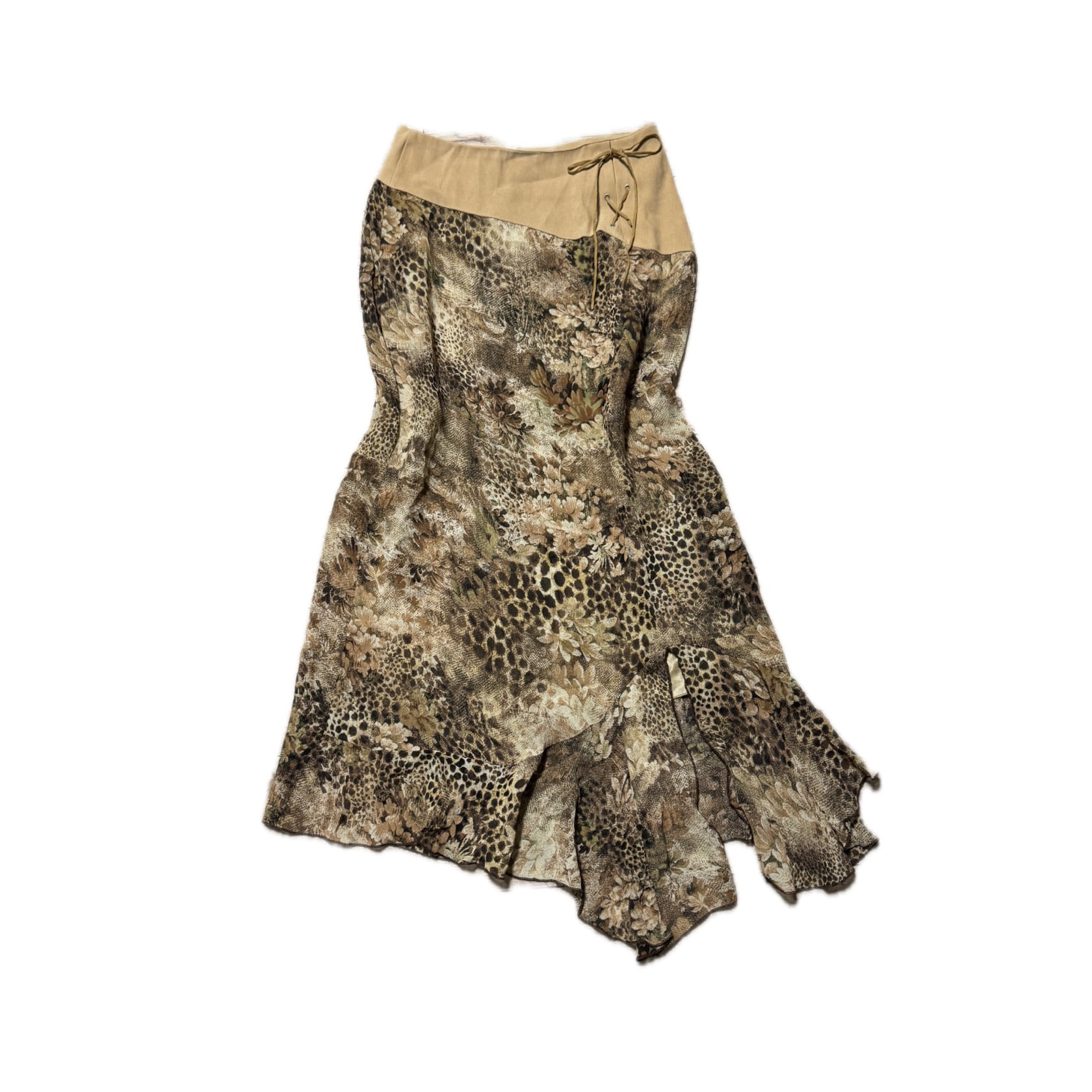 00s McBling Leopard Mix Asymmetric Hem Skirt マクブリング アシンメトリー アニマルプリント フレアスカート