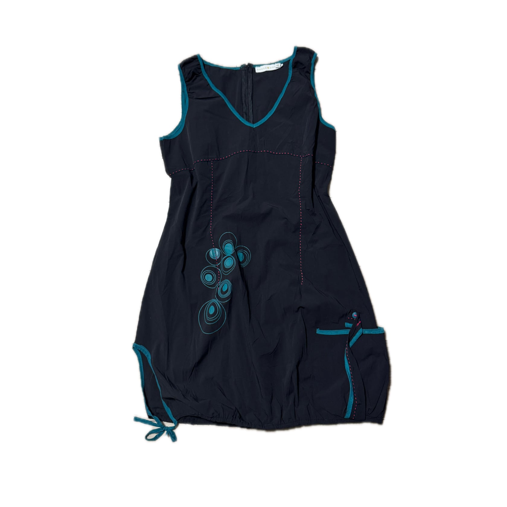 Turquoise Piping Bubble Hem Mini Dress with Circle Embroidery ターコイズパイピング バルーンシルエット ミニワンピース