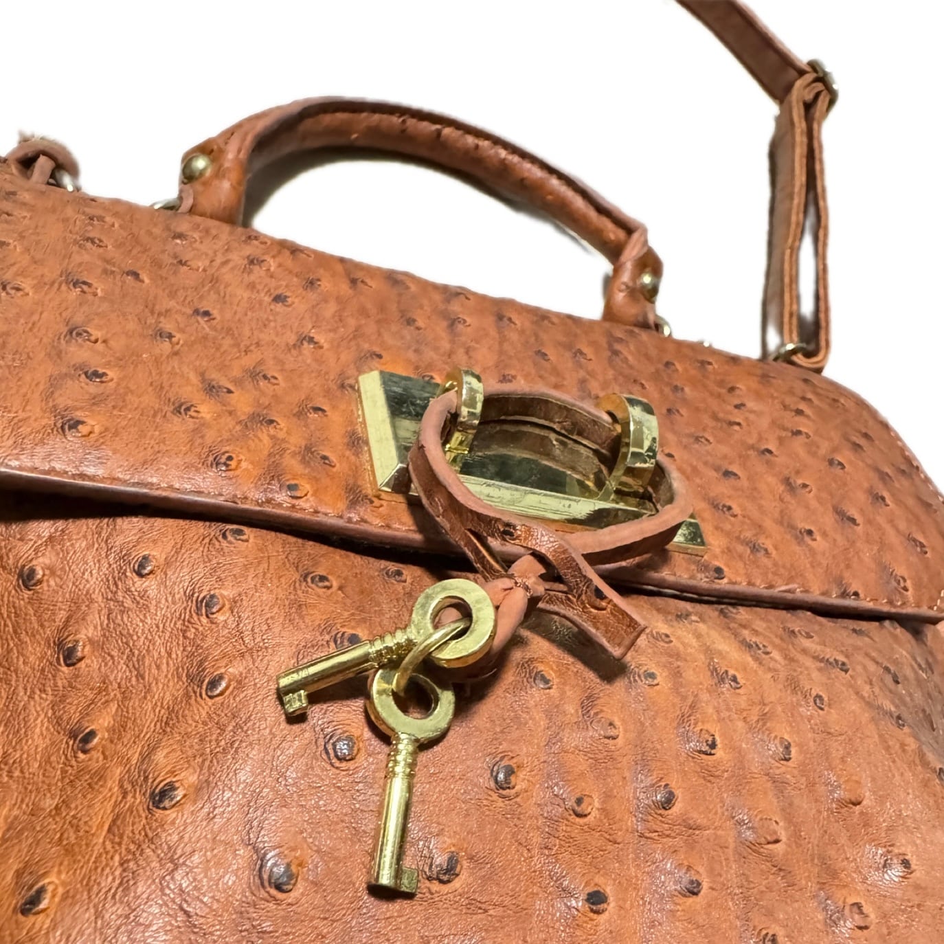 Ostrich Leather Top Handle Bag with Crossbody Strap オーストリッチ本革 2WAYハンドバッグ