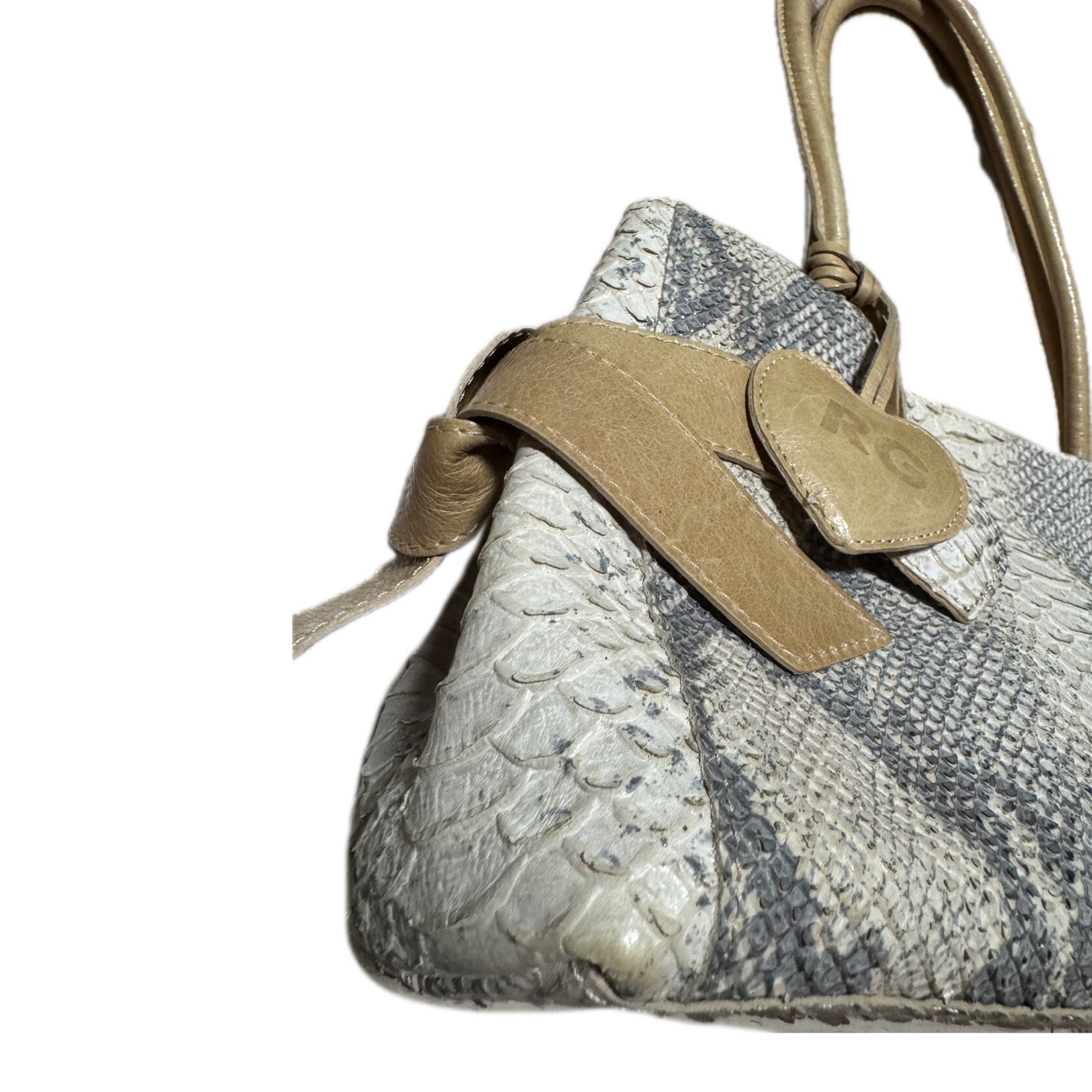 Python Skin hand Bag with Heart Charm and Bow Detail 蛇革 ハンドバッグ リボン・ハートチャーム付