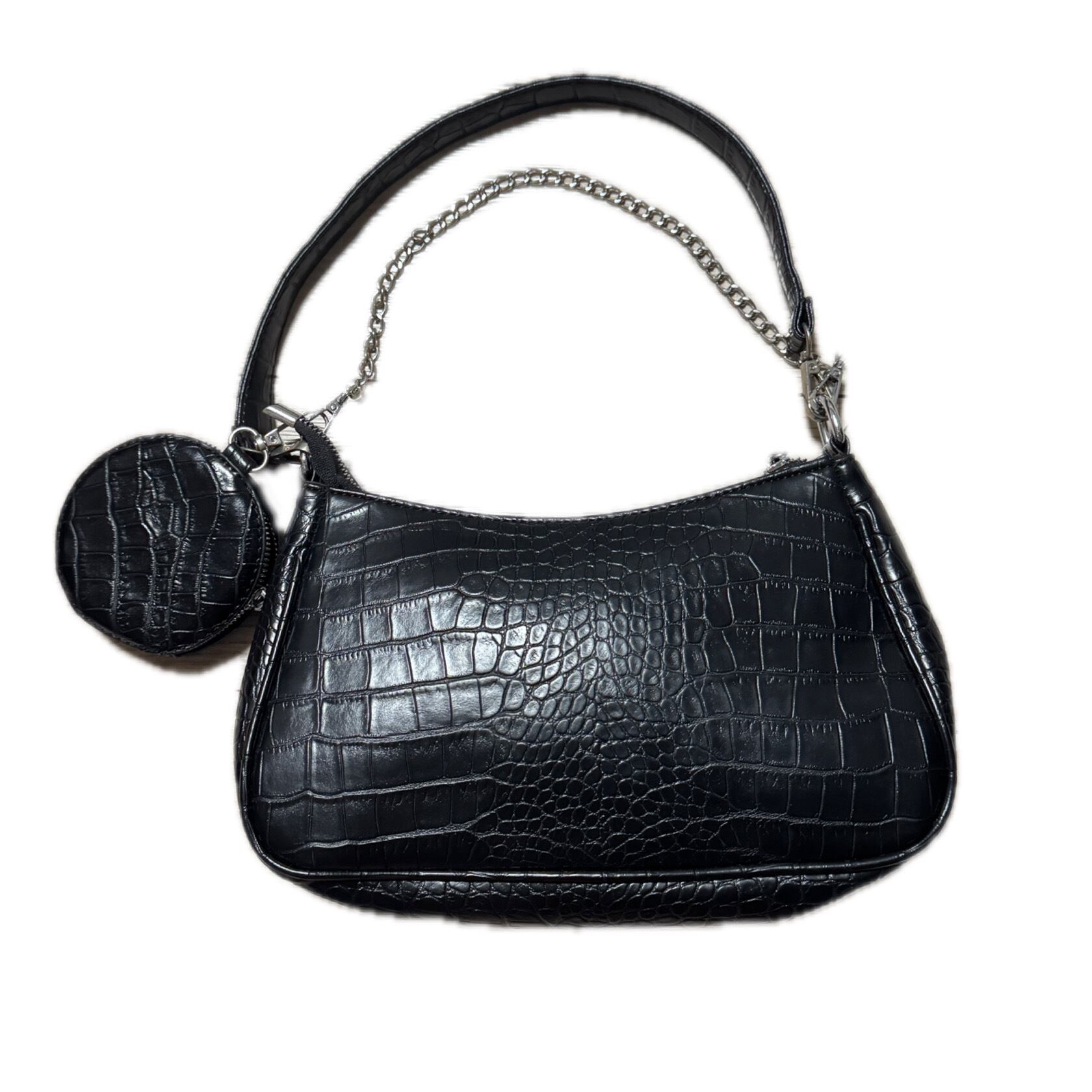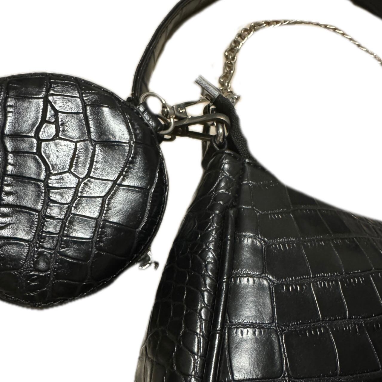 Croc Embossed Faux Leather Mini Shoulder Bag with Coin Purse & Chain Detail クロコ型押し ミニショルダーバッグ 丸型ポーチ付き チェーンストラップ