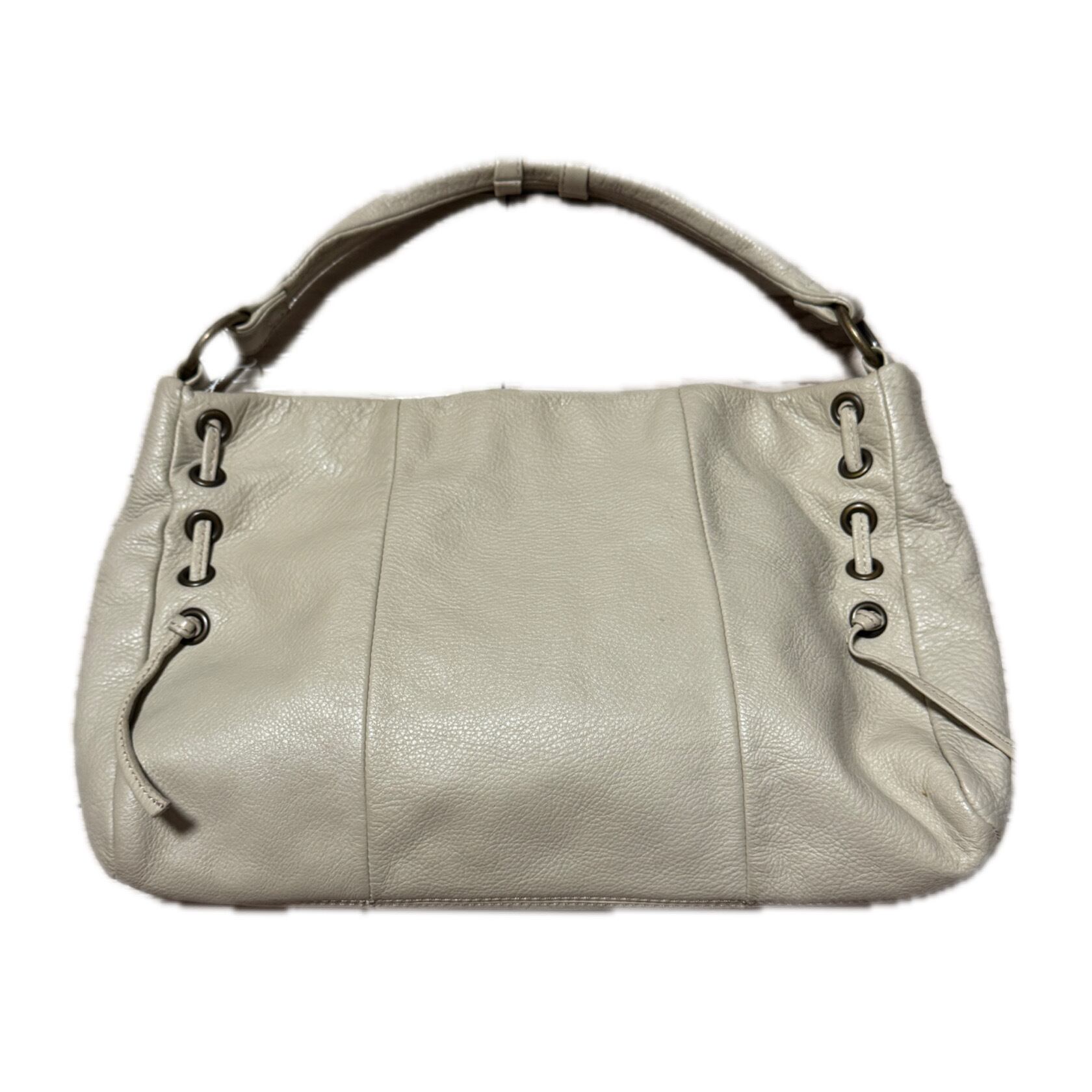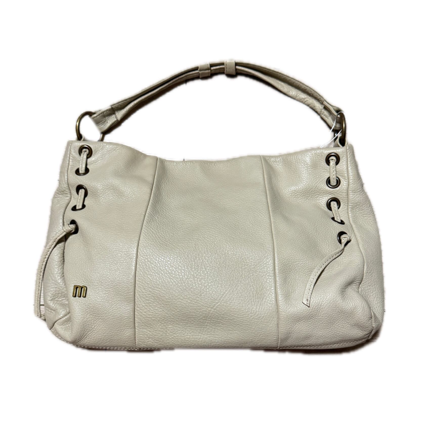 Ivory Pebble Grain Leather Shoulder Bag with Side Lace-Up Detail サイドレースアップ シボ革 ショルダーバッグ