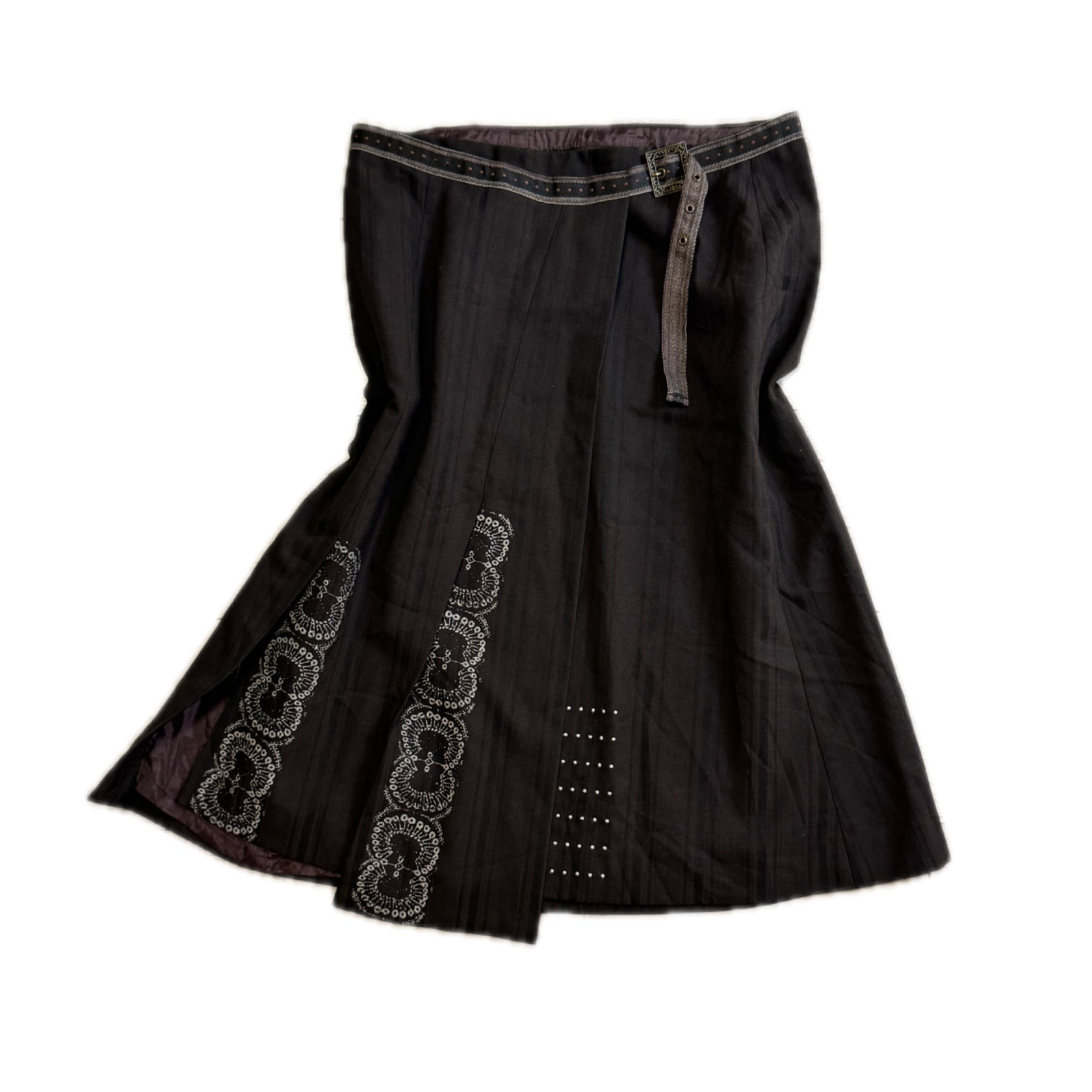 Black Embroidered Wrap Skirt with Studs and Buckle ブラック 刺繡 ラップスカート スタッズ&バックル