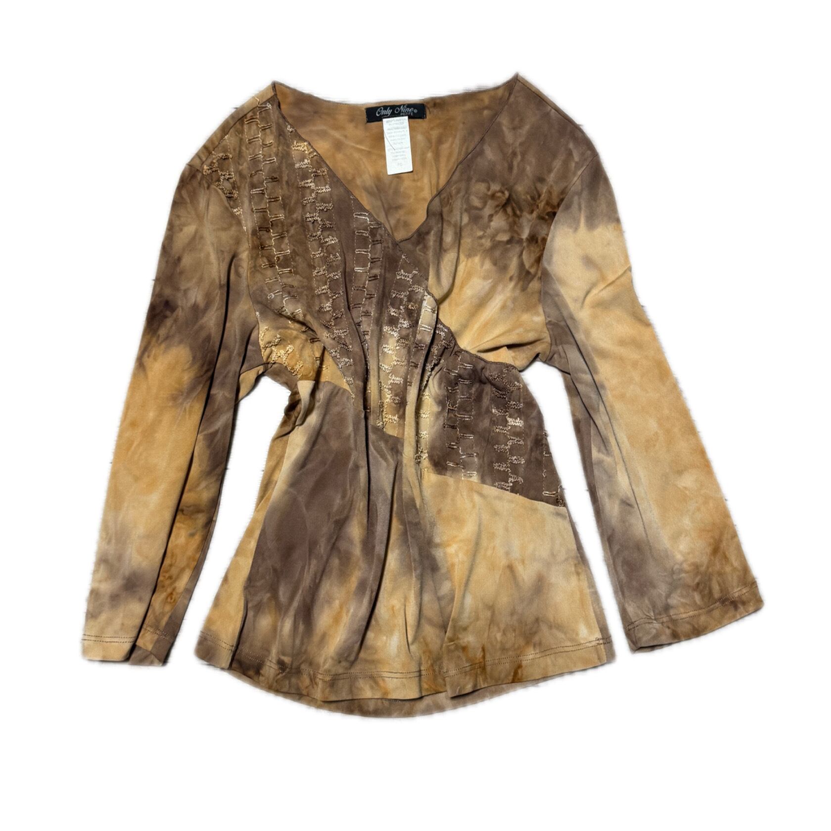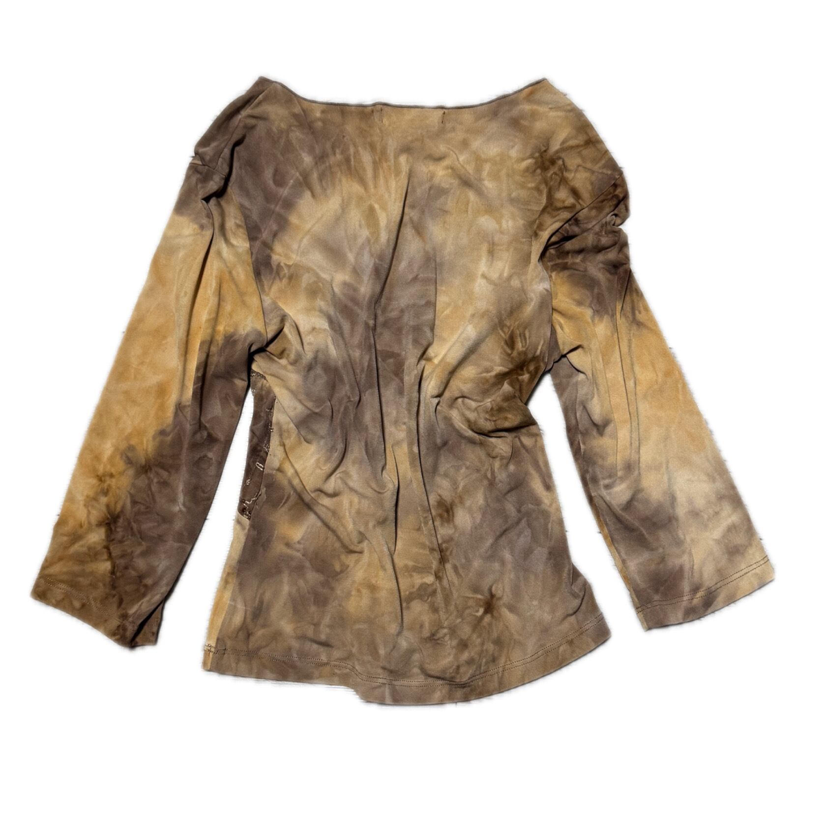 00s Fairy Grunge Tie-Dye V-neck Top Earth Tone Y2K Aesthetic 00s フェアリーグランジ タイダイ Vネックトップス ダメージ加工