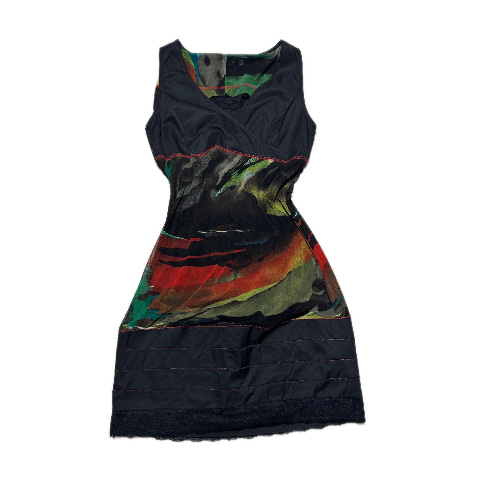 V-Neck Abstract Print Mesh Layered Dress Vネックアブストラクトプリントメッシュレイヤードワンピース