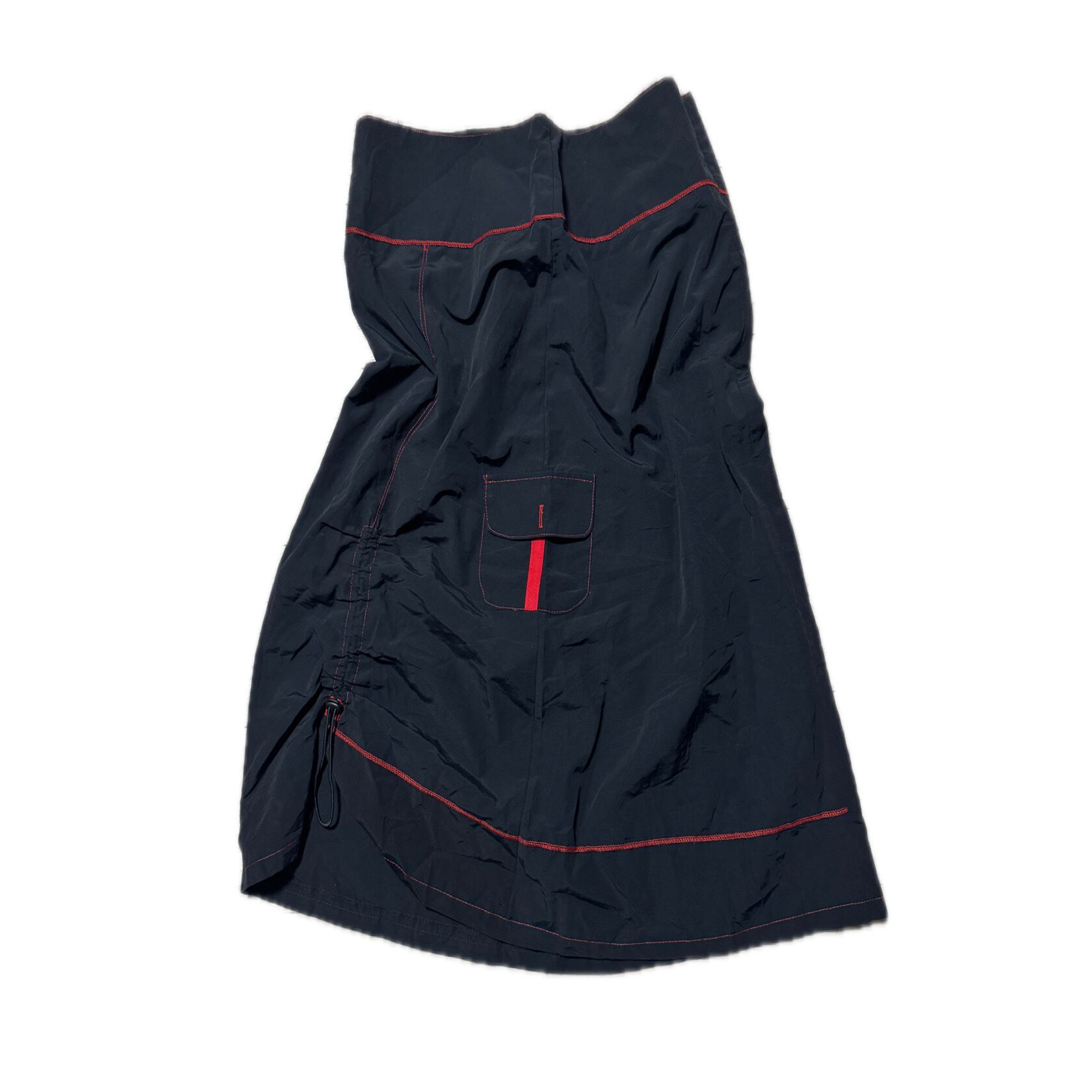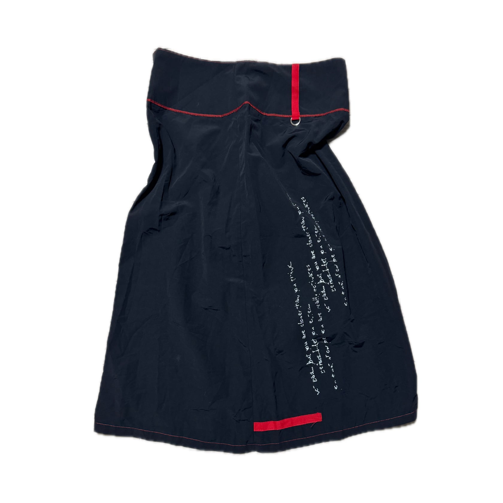 Black Mini Skirt with Red Contrast Stitching and Script Print ブラック ミニスカート レッドコントラストステッチ & スクリプトプリント