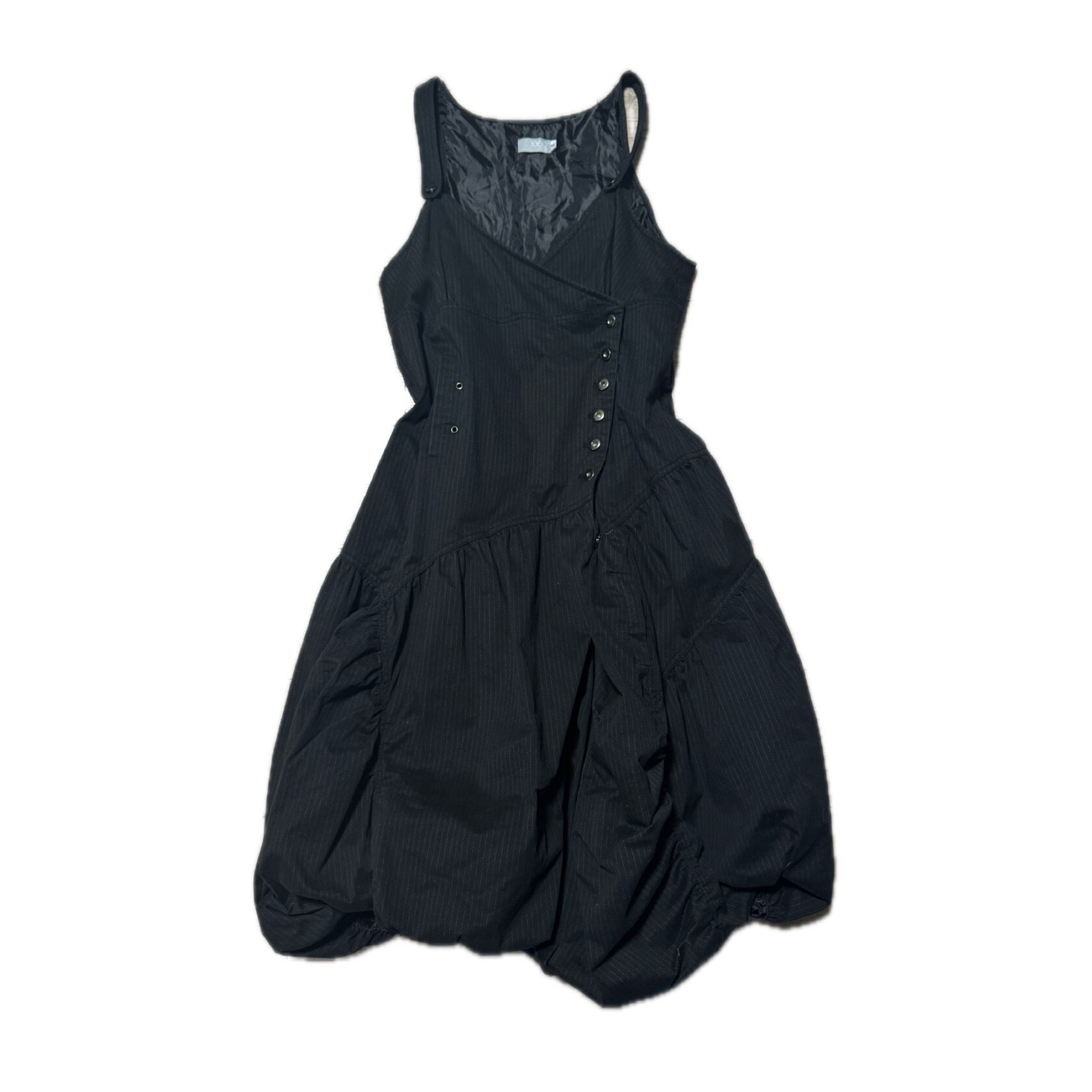 Pinstripe Button-Down Bubble Hem Midi Dress ピンストライプ ボタンダウン バブルヘム ミディドレス