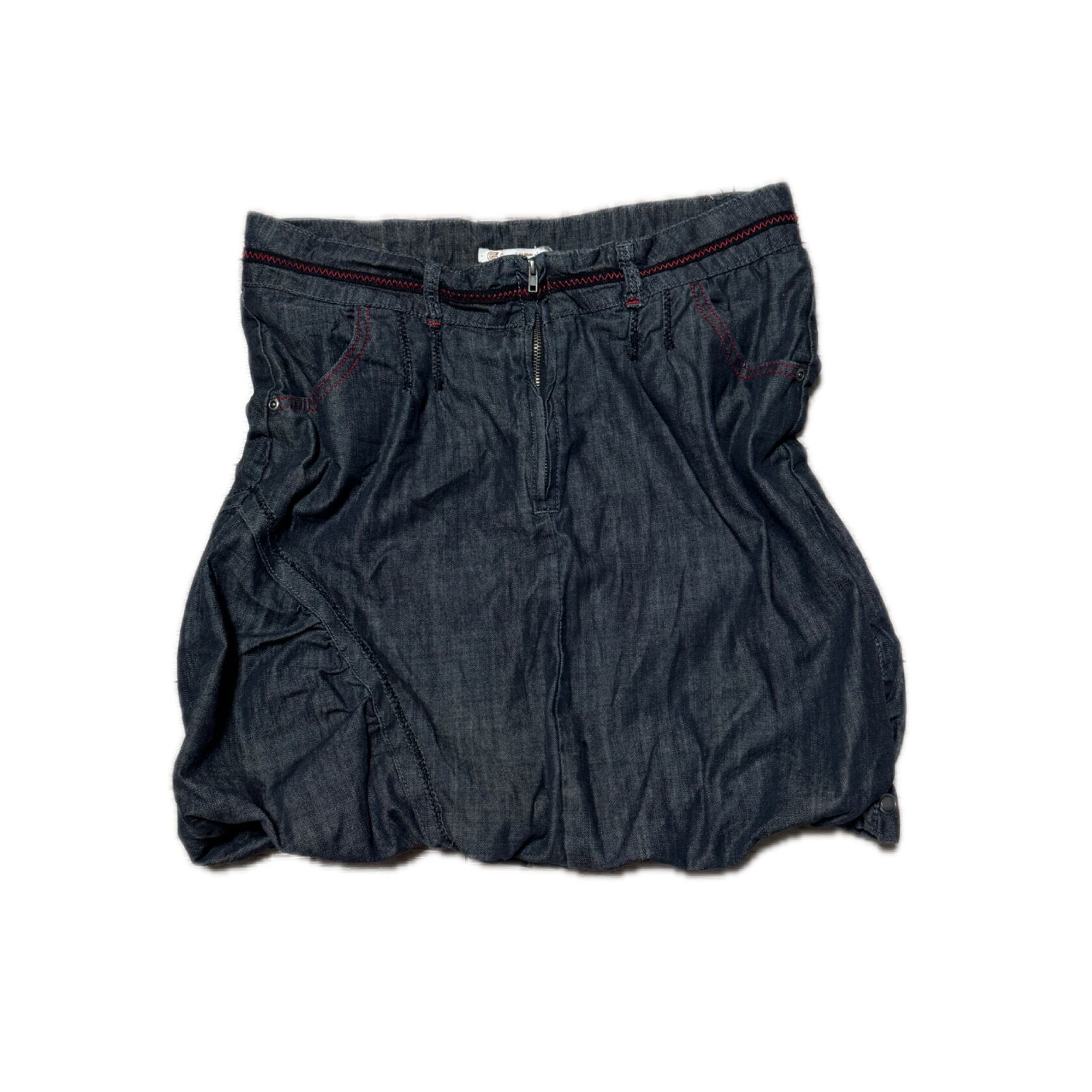 Dark Denim Bubble Skirt with Contrast Red Stitching 赤ステッチ ダークデニム バルーンスカート