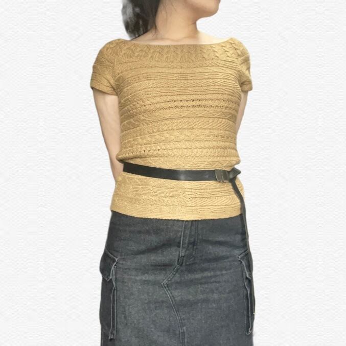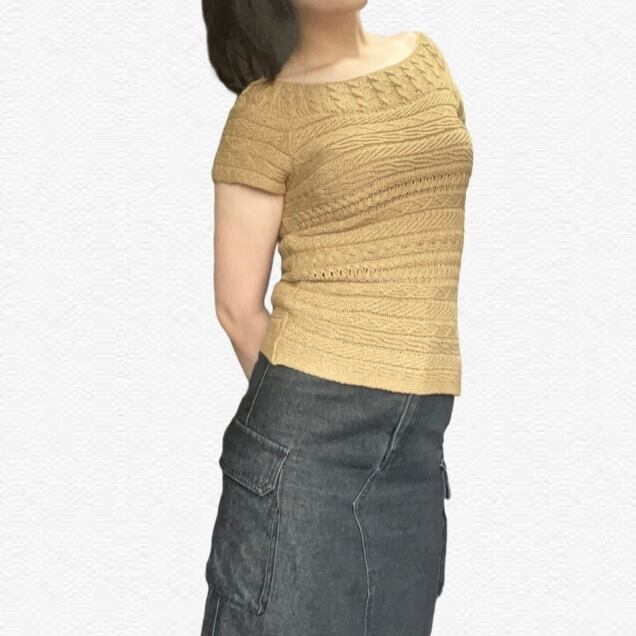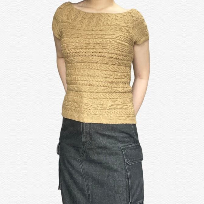 ゲージ編みデザインのニットシャツ。デザイン性があるので1枚でも様になってスカートとパンツどちらも合う便利アイテムです!!