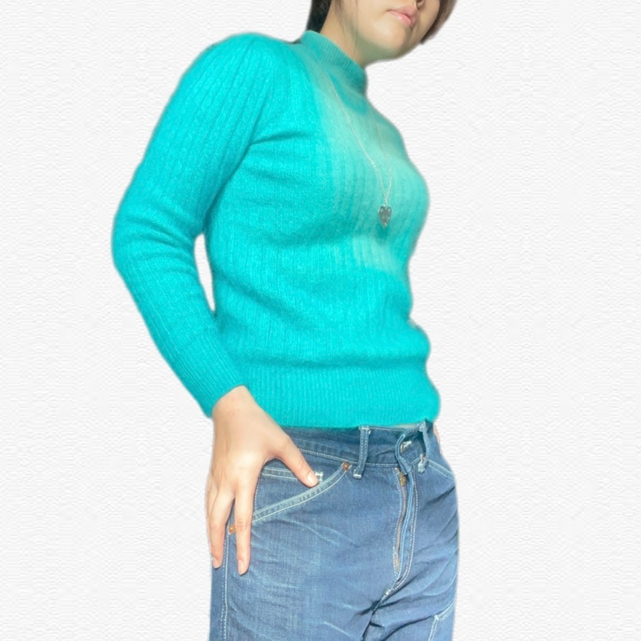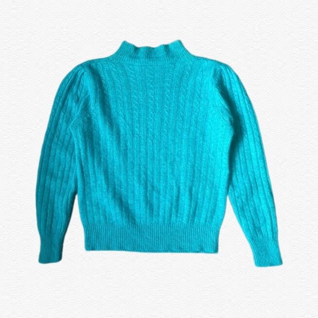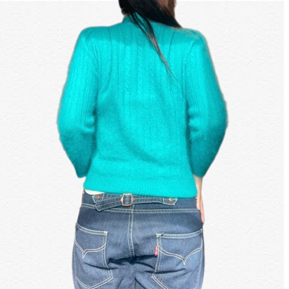 肌触りの良い素材に鮮やかなエメラルドブルーがおしゃれなモヘヤニットの登場です。