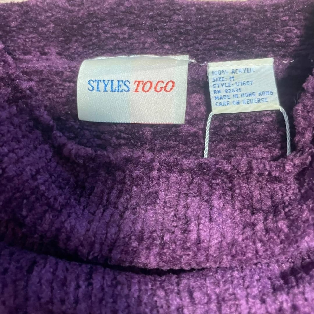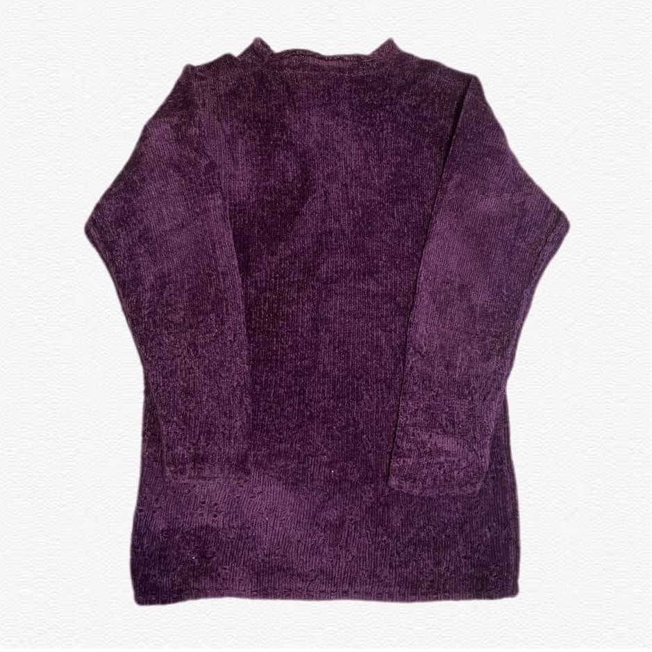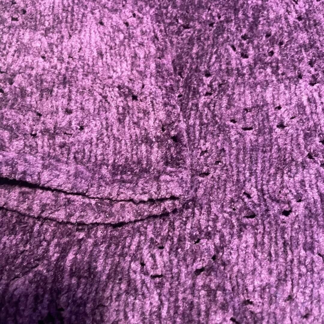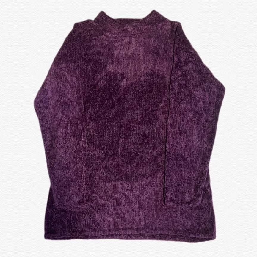 部分的にダメージ加工が施されたパープルの色味が綺麗なニット。